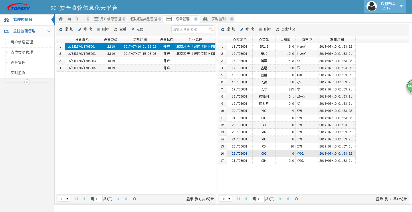 3. 实时无线气体数据:通过部署前端一体化预警防控系统,可将现场所有检测到的危化气体数据,实时上传远程危险环境监测系统中,由系统统一管理,存储,分析,打印形成报告。