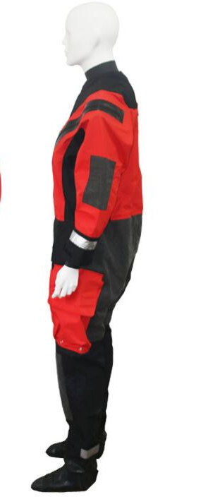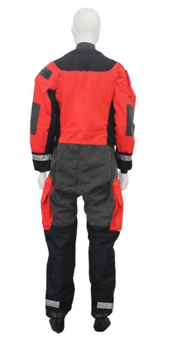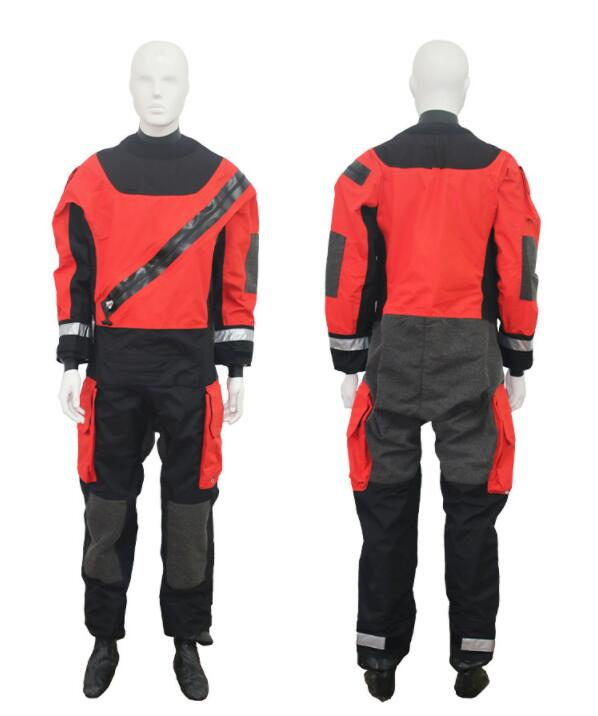 本救援服采用氯丁橡胶压合,防水耐磨,前置Y K K拉链穿脱方便手腕部采用反光圈,易于发现搜寻。