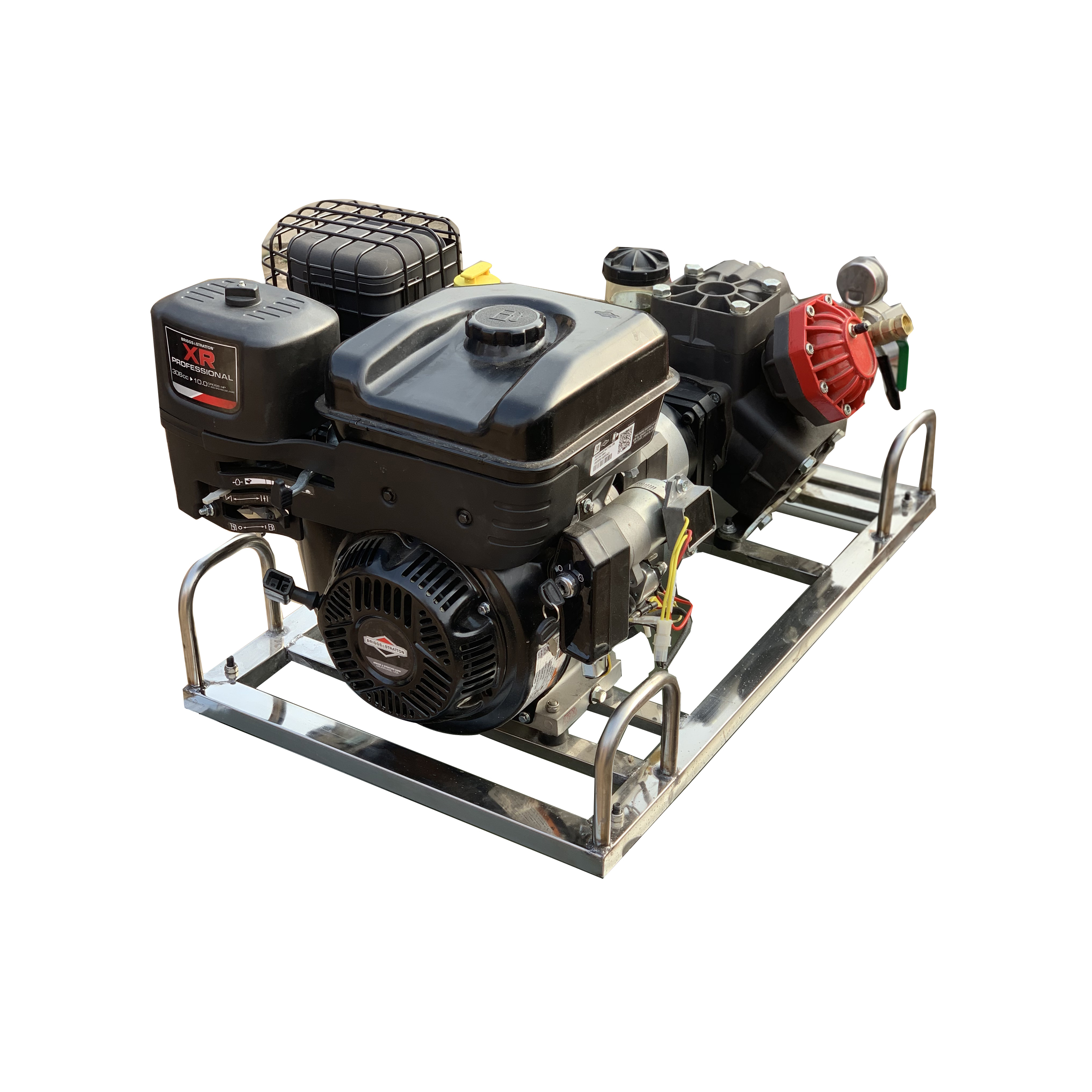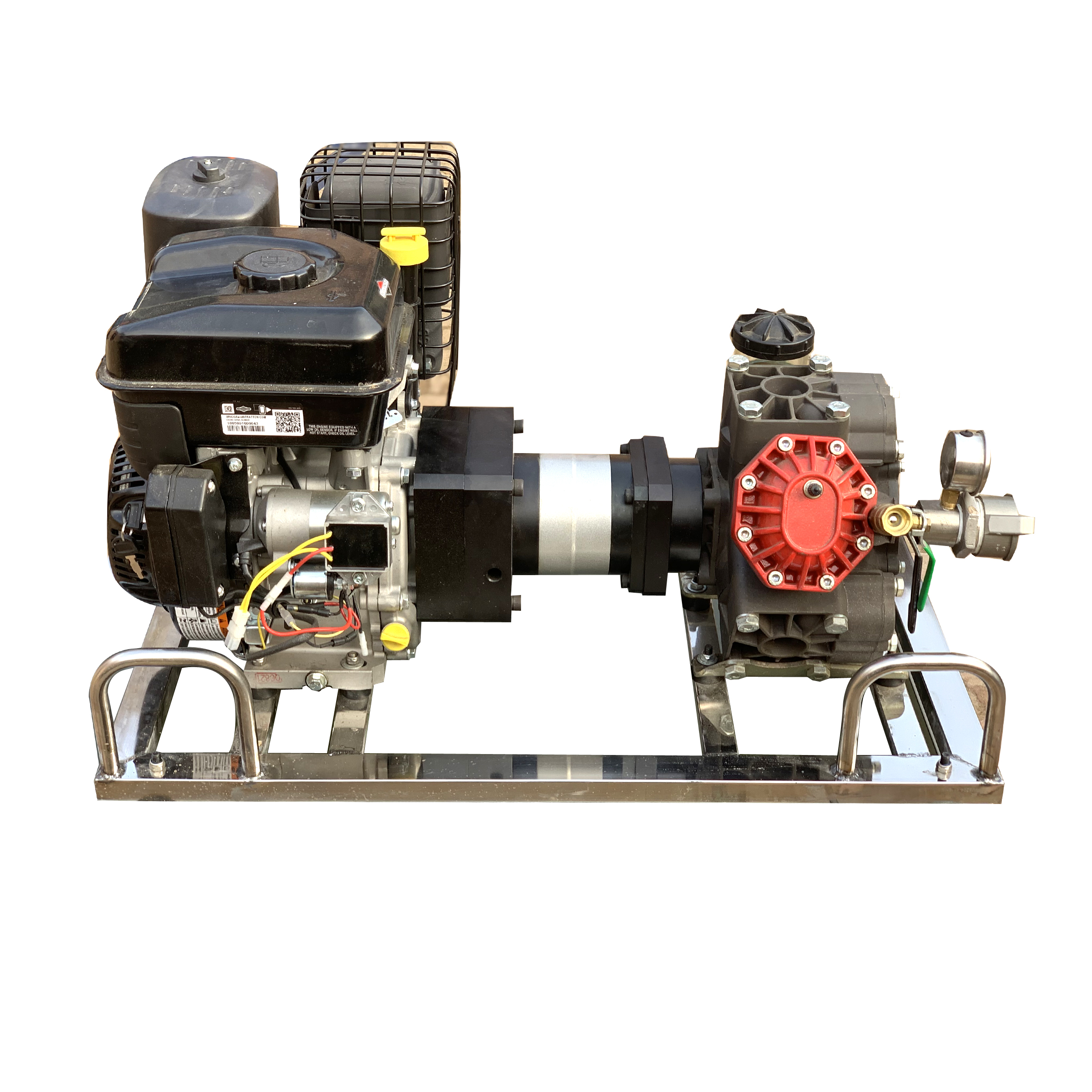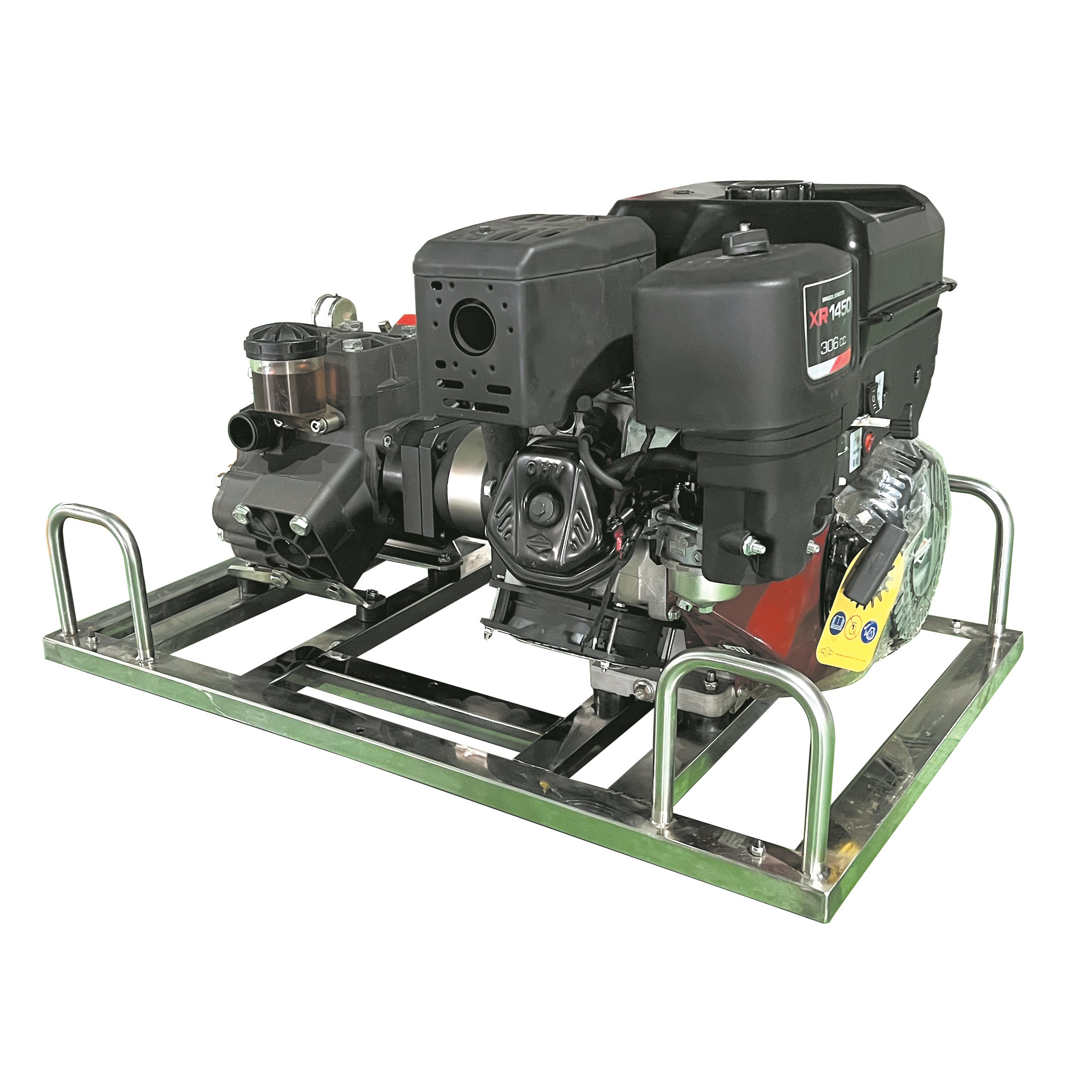 不锈钢架,便于携行。泵轴水平布置,减少震动。