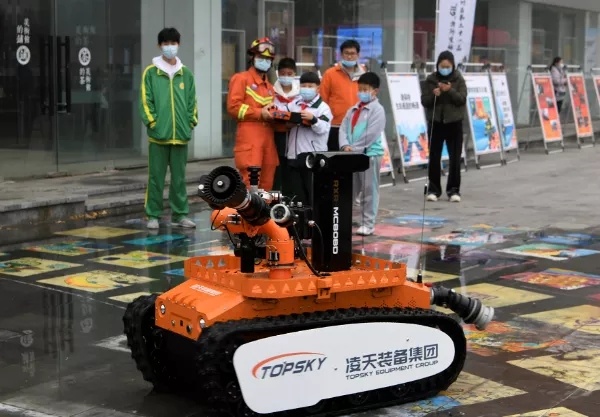 在室外展示区,消防指战员现场展示模拟烟雾逃生帐篷、消防隐患大排查、心肺复苏、高精尖消防装备器材、模拟灭火装置、消防宣传车、“一警六员”科目及消防机器人扑救电动自行车火灾演示等项目。