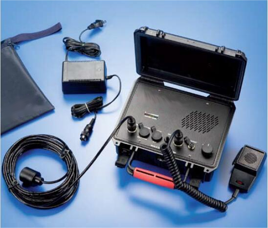 采用无线超声波原理实现了水下人员之间以及与水面人员的通话,具有无线通话、语音清晰、小巧轻便易用的特点。整套设备由1个水面控制台、8个带二级的全面罩、8个水下对讲机组成。配备详细的中文说明书。水下对讲机有两个工作频率,全面罩采用大视野设计,适合各种脸型的人,并带有排耳压装置。全面罩:专利波纹管双“S”,“弹簧轮廓”,边缘,全视野面罩,保证更大的密封性。独有的空气循环系统,保证面罩在任何时候不会起雾。透明聚碳酸酯护目镜,两面均涂有硅氧烷树脂,以提高耐擦伤性和耐化学性,护目镜可见光率>92%。头带至于面罩上,易于抓握,快速旋转带扣系统,可在水上水下快速、单手脱戴。内置二级减压阀,,预留通讯接口,可以与原厂生产的通讯系统和各种配件配合使用。面罩的总重量只有860g,正浮力可达400g,穿戴轻便舒适。高超的表面处理工艺可以在各种恶劣环境下使用,厚粘合面30-45mm,是传统面罩的两倍,由高纯度硅胶制成,带外部排耳压装置。水下对讲机:对讲机无需从面罩上取下,可在直接在面罩内折叠。采用无线超声波工作原理;工作范围可达200m,深40m(平静海面); 双供电系统,可充电,也可更换电池,耐用总时间30h;入水自动启动,低电压下耐用1h,电压低于7.5VDc时,每30s发出一次警报信号。一键通传输,自动接收,频率32.768KHz或41KHz,自动控制噪声,DAT模式30s传输,20s接收。按键通话(PTT)、静噪,带电量提示,红色闪烁LED灯和警报声音提醒等控制功能。兼容同品牌所有装置或者其他竞争品牌同频率设备。重量370g。水面工作站:采用无线超声波工作原理;水面设备,工作范围可达1000m;通过通讯线路/开关激活。可充电式6Vac铅酸电池,耐用总时间48h;低电压下耐用1.5h,电压低于4.8Vac时,每30s发出一次警报信号。一键通传输,自动接收,频率32.768KHz或41KHz,自动控制噪声,重量2.3kg。