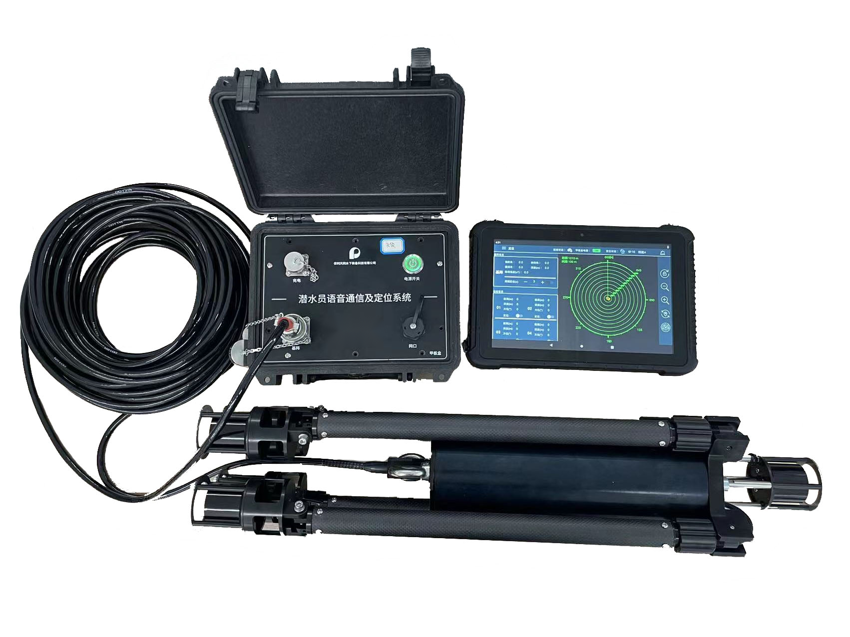 用于潜水员语音、数字通信及定位,具备水面指控系统、水面定位基阵、 水下潜水员单兵穿戴和显示系统。通信距离1000-1500m,工作深度≥60m。