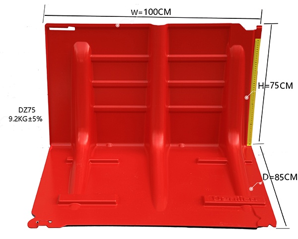 2.L型结构,合金聚酯复合材料可拆卸卸式防洪板,每块板上都有卡扣和连接结构,可灵活组装,底部有防滑胶条和阻水记忆棉,有效挡水高度不低于50cm。